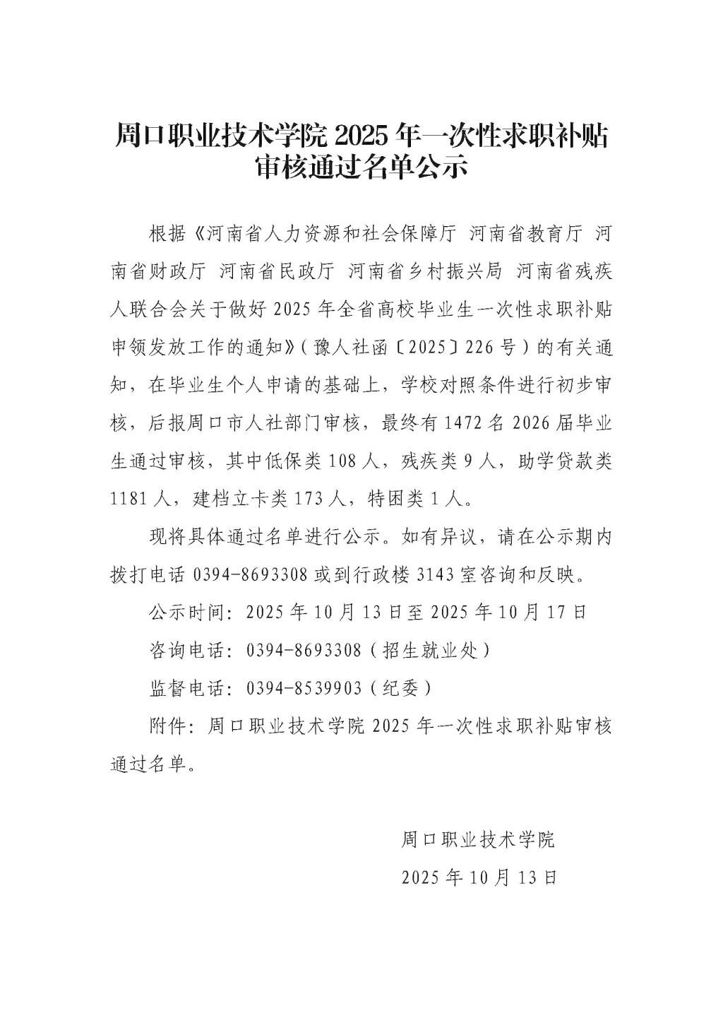 附件:周口职业技术学院2025年一次性求职补贴审核通过名单.pdf