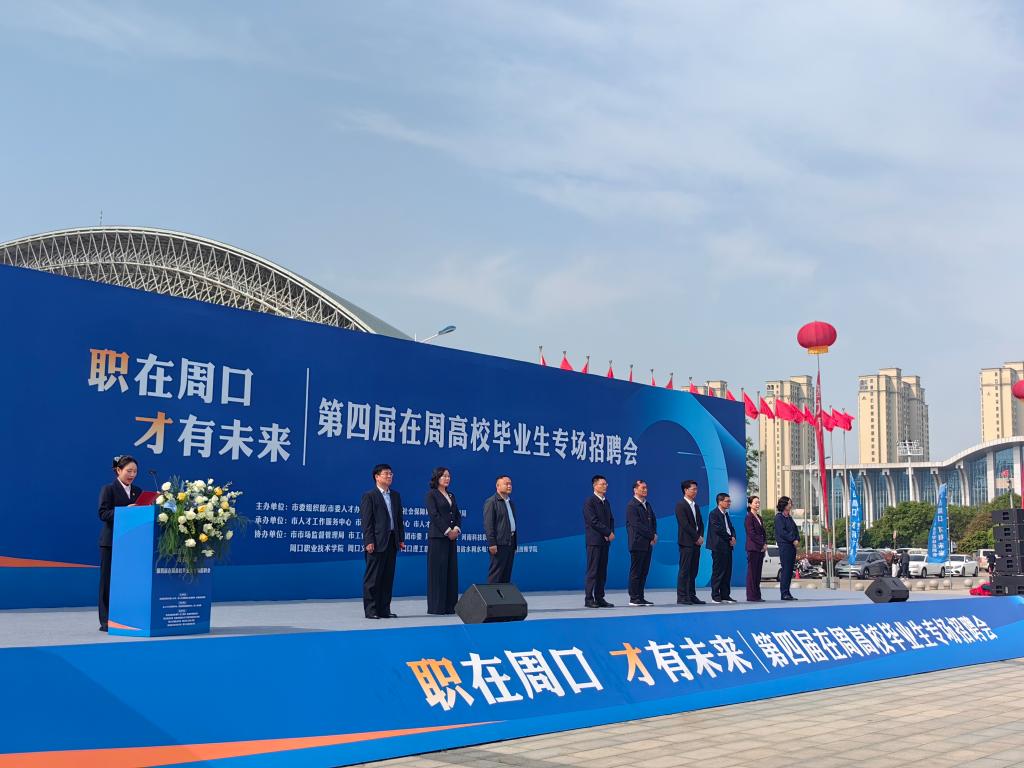 为深入落实高校毕业生就业攻坚行动,助力学子留周就业、服务地方发展,4月25日上午,周口市第四届“职在周口,才有未来”在周高校毕业生专场招聘会在市体育中心广场隆重举行。我校副校长王隼带队,招生就业处全体工作人员、各二级学院(部)党总支书记及众多毕业生共同参会,积极开展访企拓岗,精准对接企业用人需求,全力推动毕业生更高质量、更充分就业。